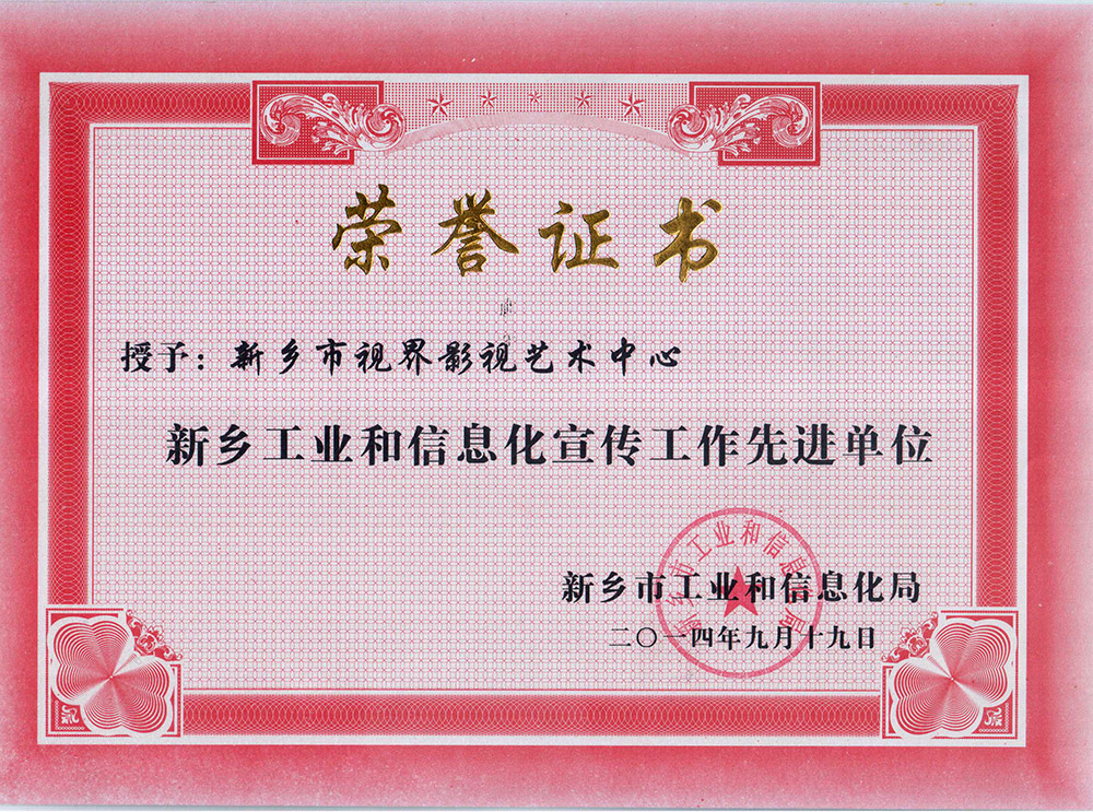 獎狀:新鄉(xiāng)工業(yè)信息化宣傳先進(jìn)單位